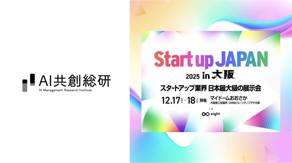 株式会社AI共創総研は、2025年12月17日(水)・18日(木)にマイドームおおさかにて開催される、スタートアップ業界 日本最大級の展示会「Startup JAPAN EXPO 2025 in 大阪」に出展いたします。